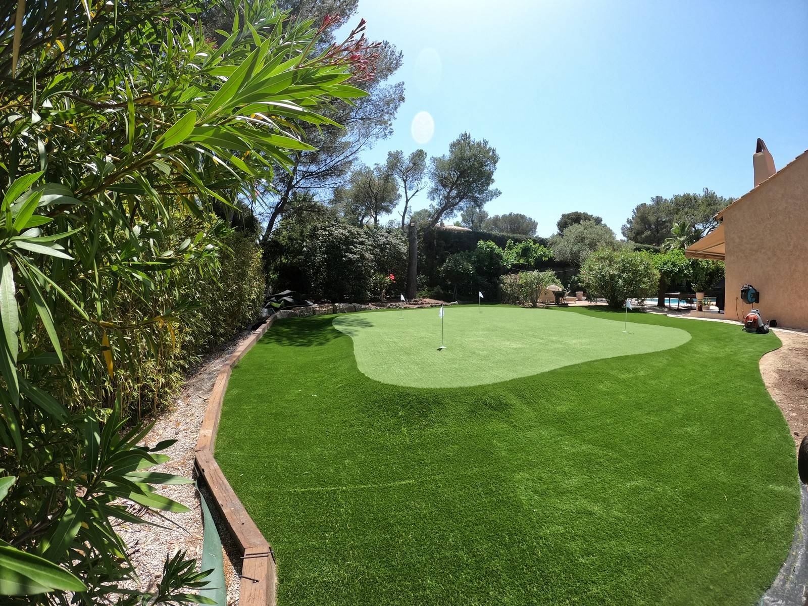 Putting, chipping, approches, bogeys, fairway... De la conception à l'installation en passant par la personnalisation, nous réalisons votre zone d'entrainement au golf sur mesure à votre domicile. Notre client a fait confiance à notre équipe et est pleinement satisfait de son green synthétique !